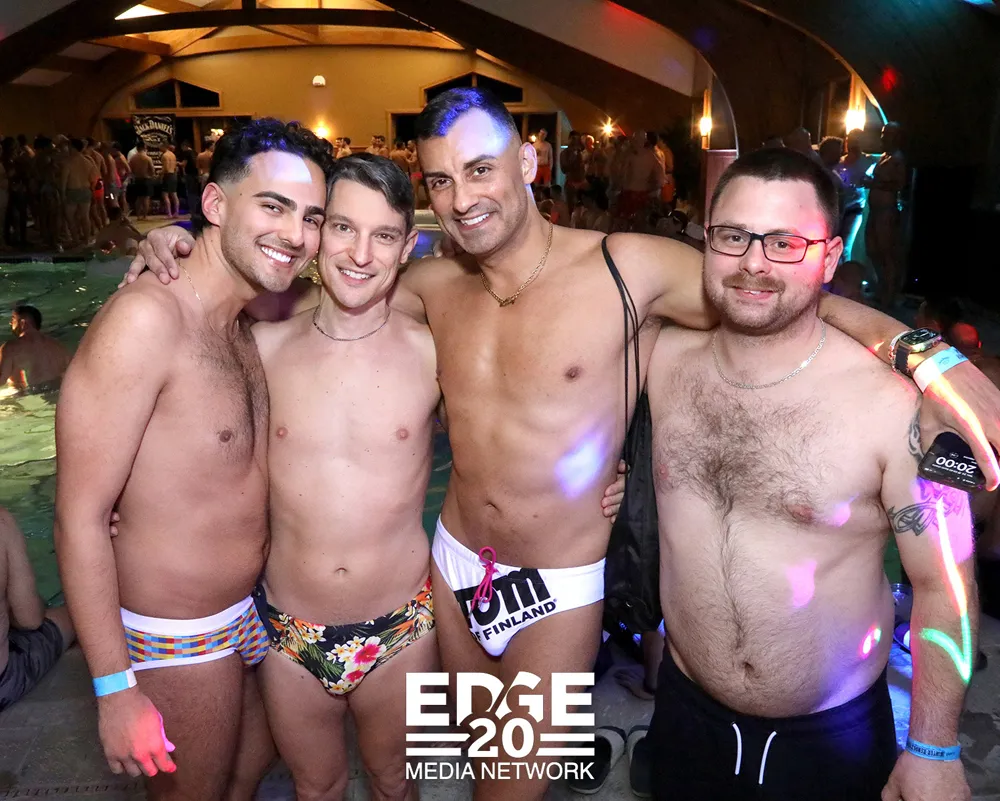 After a fierce day of shredding the slopes at Stowe Mountain Resort, the real après-ski magic happened poolside! DJ Keith James turned up the heat at the legendary Winter Rendezvous pool party at the Trapp Lodge-because nothing says "winter wonderland" like steamy vibes, splashy cocktails, and queers making waves. 💦🔥❄️
