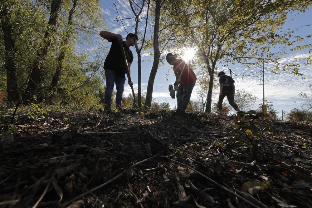 The students have spent time at a park pulling invasive plants and planting cypress tree saplings, which are good for water retention and preventing soil erosion.